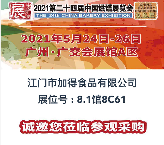 加得美 誠邀您參觀2021第二十四屆中國烘焙展覽會